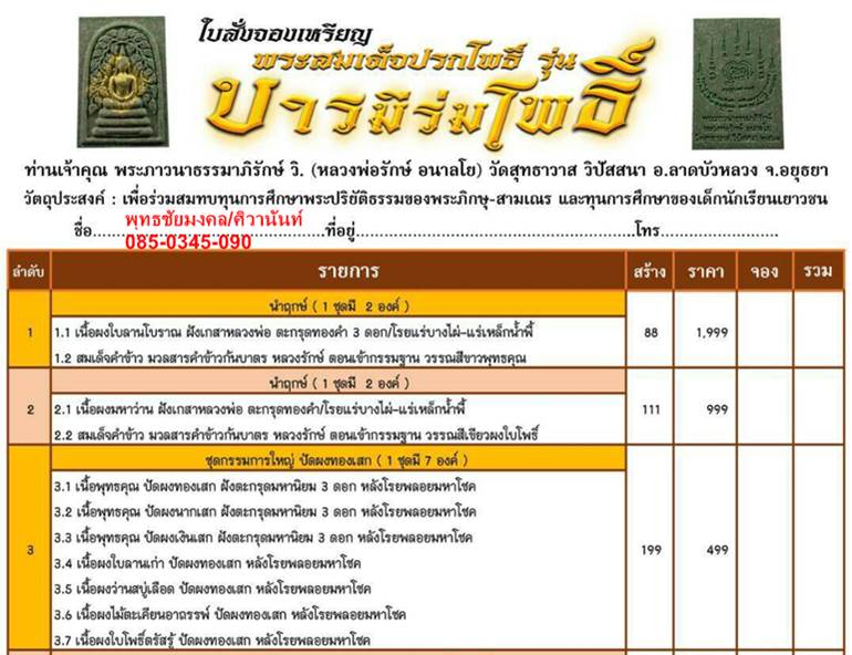 กำหนดรับวัตถุมงคล 5 สิงหาคม 61 เป็นต้นไป