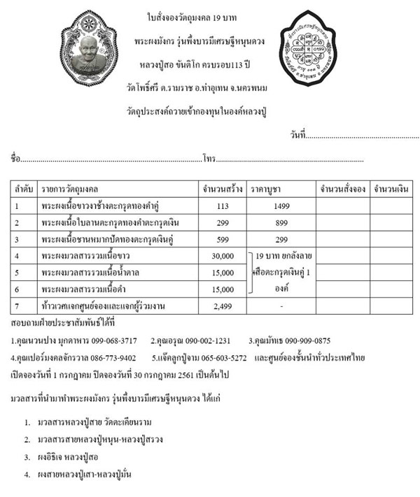 เปิดจอง.พระผงมังกร รุ่น พึ่งบารมีหนุนดวง หลวงปู่สอ ขันติโก พระอริยสงฆ์ 6 แผ่นดิน อายุ 113 ปี
