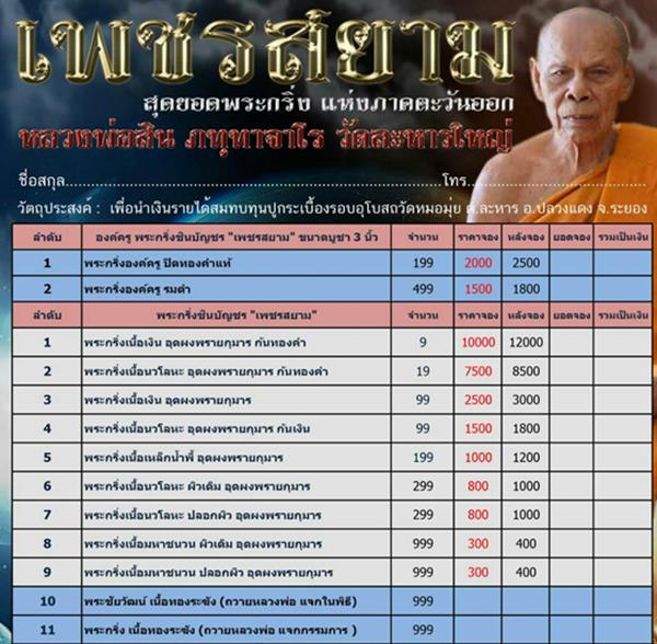 หัวข้อกระทู้ : จองพระกริ่งชินบัญชร รุ่นเพชรสยาม หลวงพ่อสิน วัดละหารใหญ่ จ.ระยอง ราคาวัด