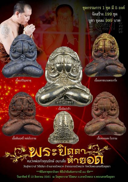 วัตถุมงคล >> พระปิดตา ๕ ยอด หลวงพ่อรักษ์ อนาลโย วัดสุทธาวาสวิปัสนา จ.อยุธยา