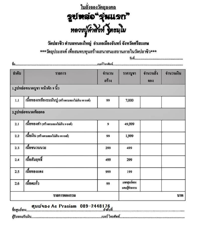 รายการ 2.2 รูปหล่อขนาดห้อยคอ เนื้อเงิน ราคาจอง 1,999.-บาท มียอด = สอบถาม