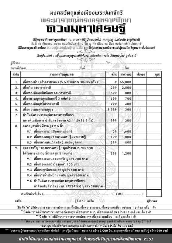 เปิดจอง พระนารายณ์ทรงครุฑ ราชปักษา รุ่นดวงมหาเศรษฐี