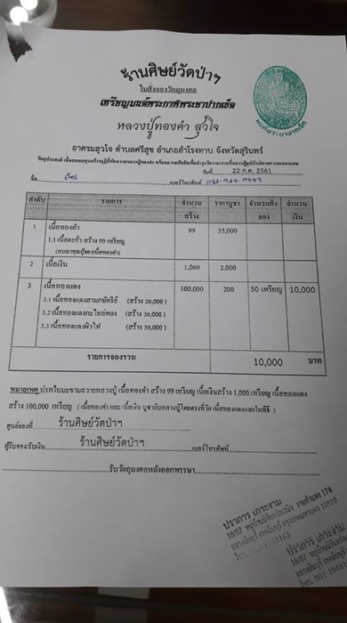 แบ่งบูชาเป็นชุดมี 3 ชุด ชุดละ 10 องค์