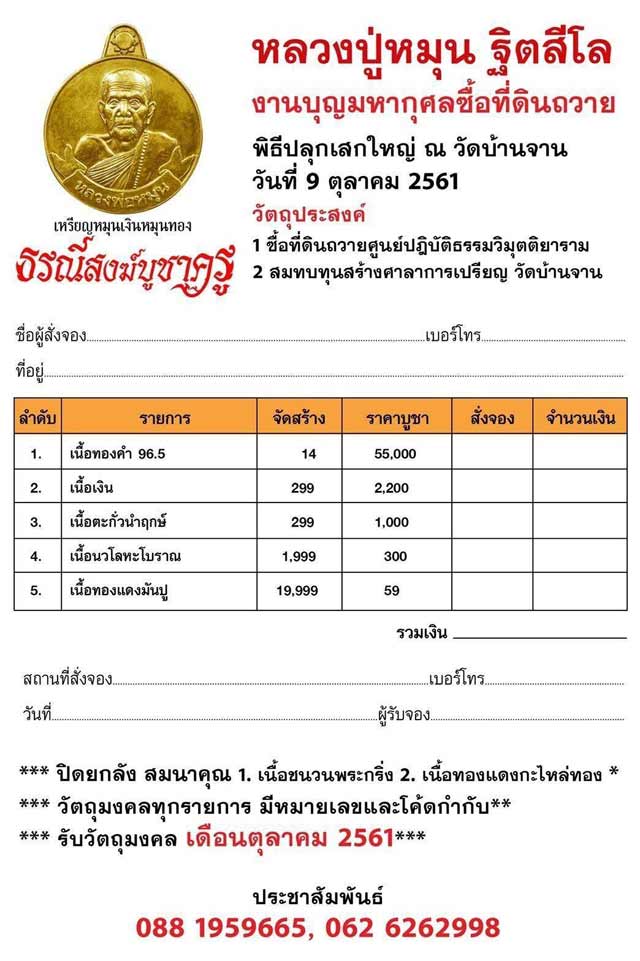 3.เนื้อตะกั่วนำฤกษ์ มี 2 เหรียญๆละ 1000 บาท