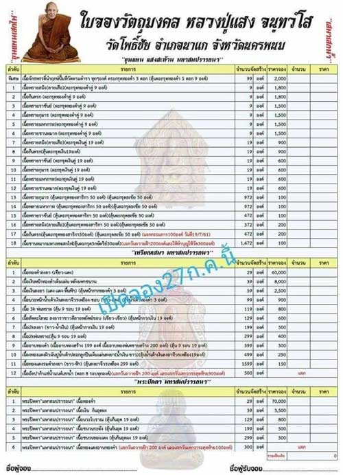 รายการที่ 9 เนื้ออาบทองคำ (อาบทองสร้าง 199 อาบทองพ่นทรายสร้าง 200) (ลุ้น 9 รอบ 19องค์) มียอด 1องค์ๆละ 600 บาท
