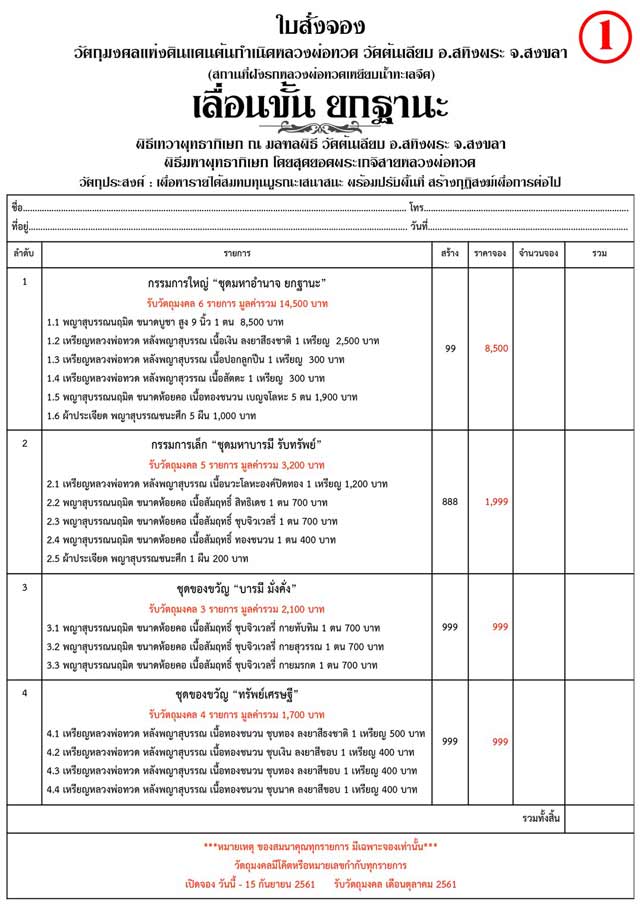 3.ชุดของขวัญ บารมีมั่งคั่ง มี 5 ชุดๆละ 999 บาท