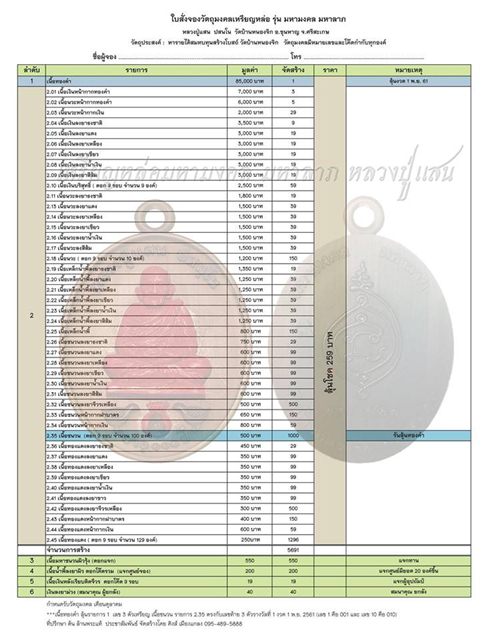 ********เปิดจองวันที่ 2 ส.ค.61 ปิดจอง 22 ส.ค.61 กำหนดรับวัตถุมงคลเดือนตุลาคม 2561********