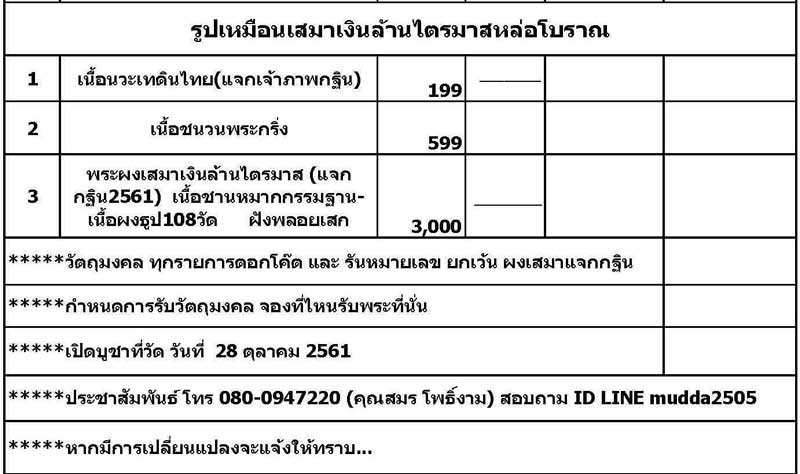 ***หมายเหตุ จะคละเนื้อพระ ไม่สามารถเลือกสีเลือกเนื้อได้