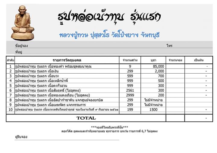*** มีรายการเปิดจอง ดังนี้ครับ