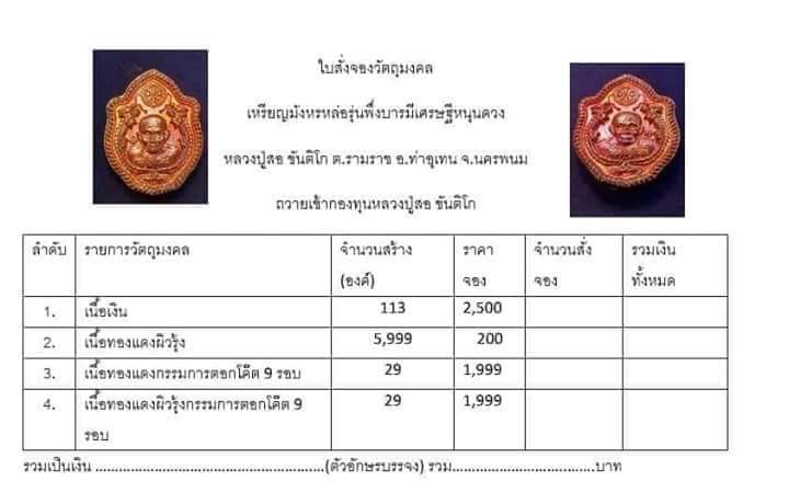 รายการ 1.เนื้อเงิน ราคาจอง 2,500.-บาท มียอด = สอบถาม