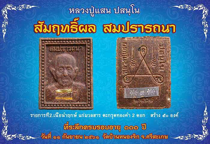 หลวงปู่แสน ปสนโน รุ่น สัมฤทธิ์ผล สมปรารถนา