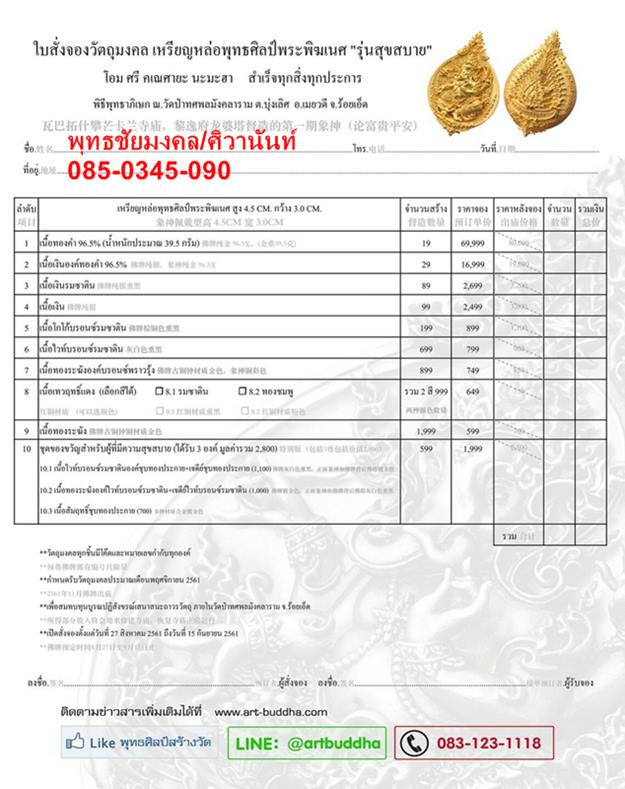 กำหนดรับวัตถุมงคลประมาณเดือนพฤศจิกายน 61