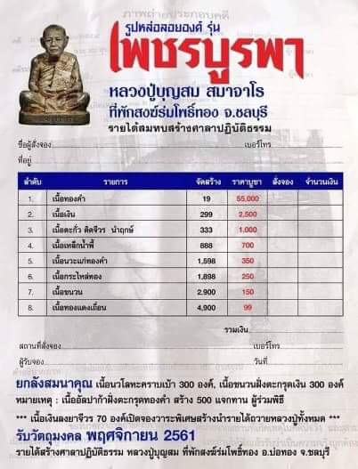 👉รายการที่ 3 เนื้อตะกั่วติดจีวร (นำฤกษ์) มียอด 1 ราคา 1500