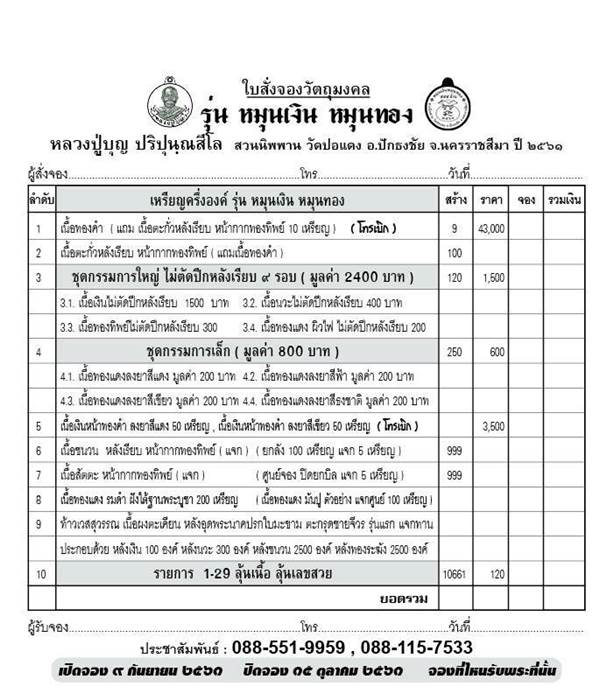 รายการ 3.ชุดกรรมการใหญ่ ไม่ตัดปีกหลังเรียบ ๙ รอบ(รับพระ4 เหรียญ) ราคาจอง 1,500.-บาท มียอด = 1