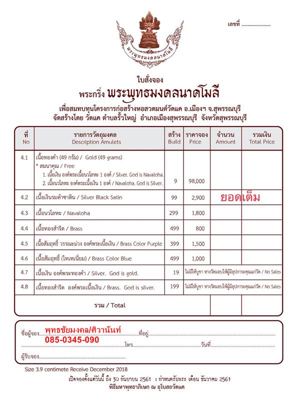 รับวัตถุมงคล เดือนธันวาคม 61 เป็นต้นไป