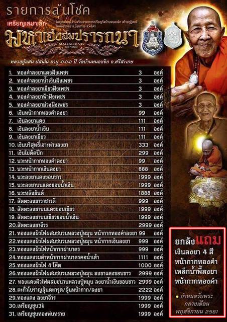 *** กรณีสั่งจองยกลัง (100 เหรียญ) สมนาคุณเหรียญรายการพิเศษ