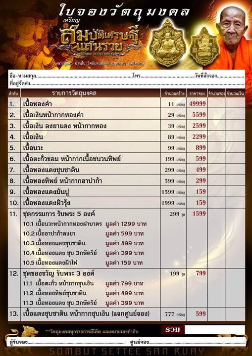 รายการ 12.ชุดของขวัญ (รับพระ 3 เหรียญ) ราคาจอง 799.-บาท มียอด= 10