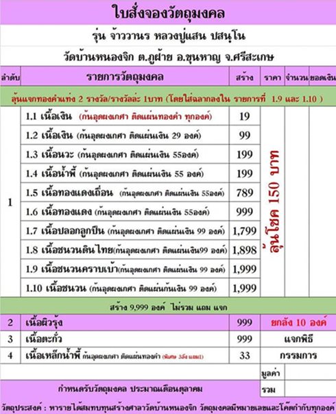 ราคาจองราคาเดียว150บาท มียอดจอง30องค์