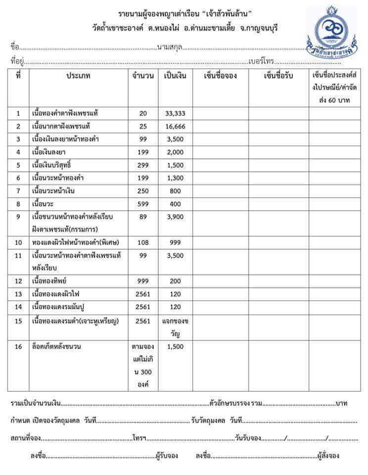 **รับวัตถุมงคล เดือนพฤศจิกายน 2561**