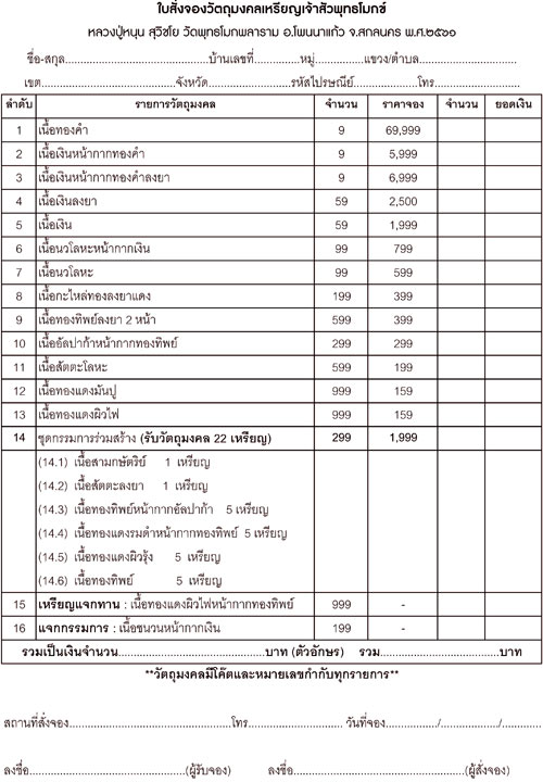 เปิดจองตามรายการราคาวัดครับ