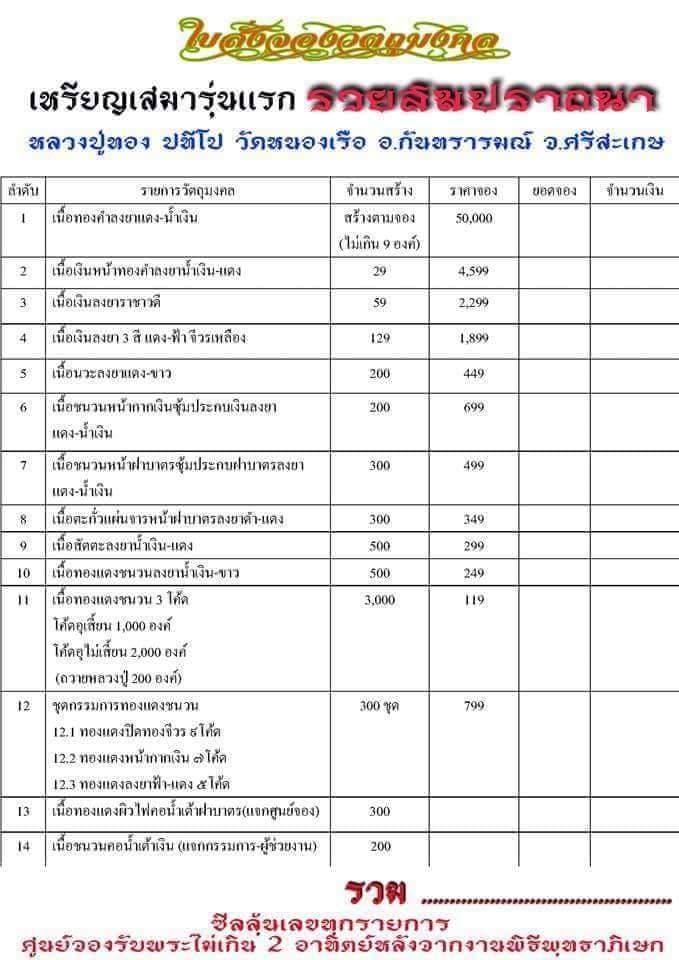 หลวงปู่ทอง ปที่โป ตามใบจอง ท่านใดสนใจ