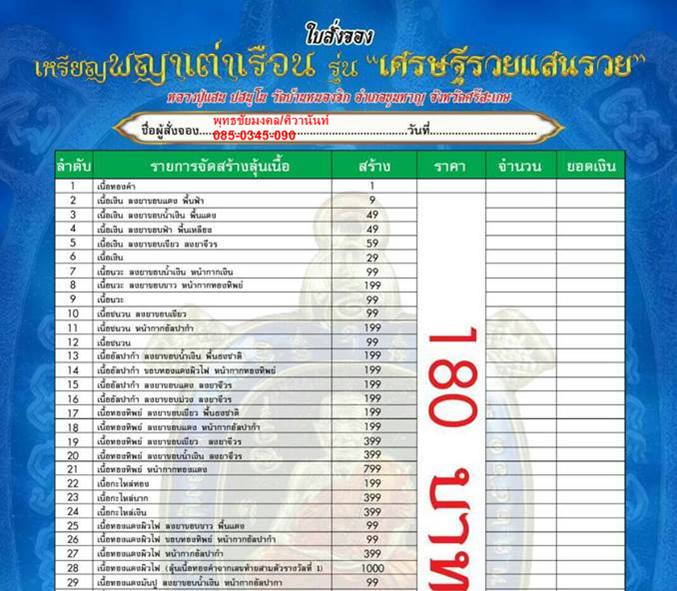 รับวัตถุมงคล เดือนพฤศจิกายน 61