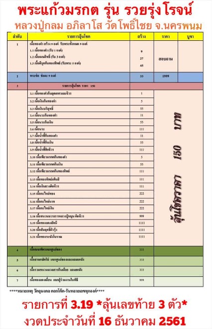 | หัวข้อกระทู้ : เปิดจองพระแก้วมรกต รุ่นรวยรุ่งโรจน์ หลวงปู่กลม อภิลาโส วัดโพธิ์ไชย จังหวัดนครพนม |