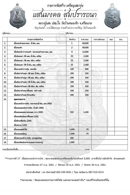 รายการ 14.ชุดกรรมการ (รับพระ 6 เหรียญ) ราคาจอง 1,200.-บาท มียอด = 10