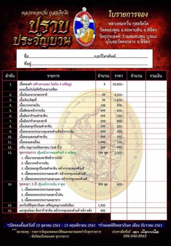 รายการ 13.ชุดกรรมการ (รับพระ 5 เหรียญ) ราคาจอง 2,000.-บาท มียอด = 5