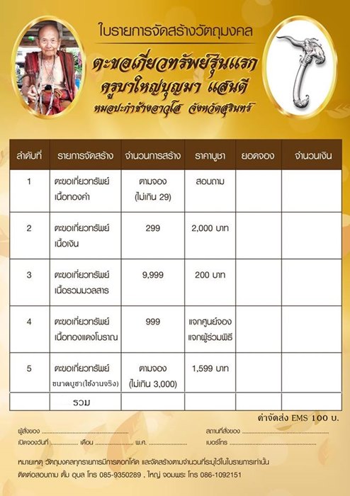 5.ตะขอเกี่ยวทรัพย์ ขนาดบูชา ( ใช้งานจริง ) สร้างตามจอง ไม่เกิน 3,000 อัน ราคา 1,599 บ. มียอด 2 อัน
