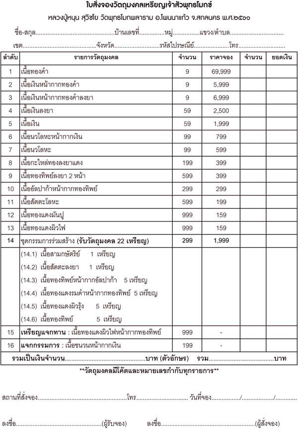 เปิดจองตามรายการราคาวัดครับ