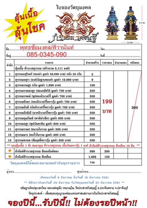 📝📝จองท้าวเวสสุวรรณ รุ่น กำเนิดเศรษฐี