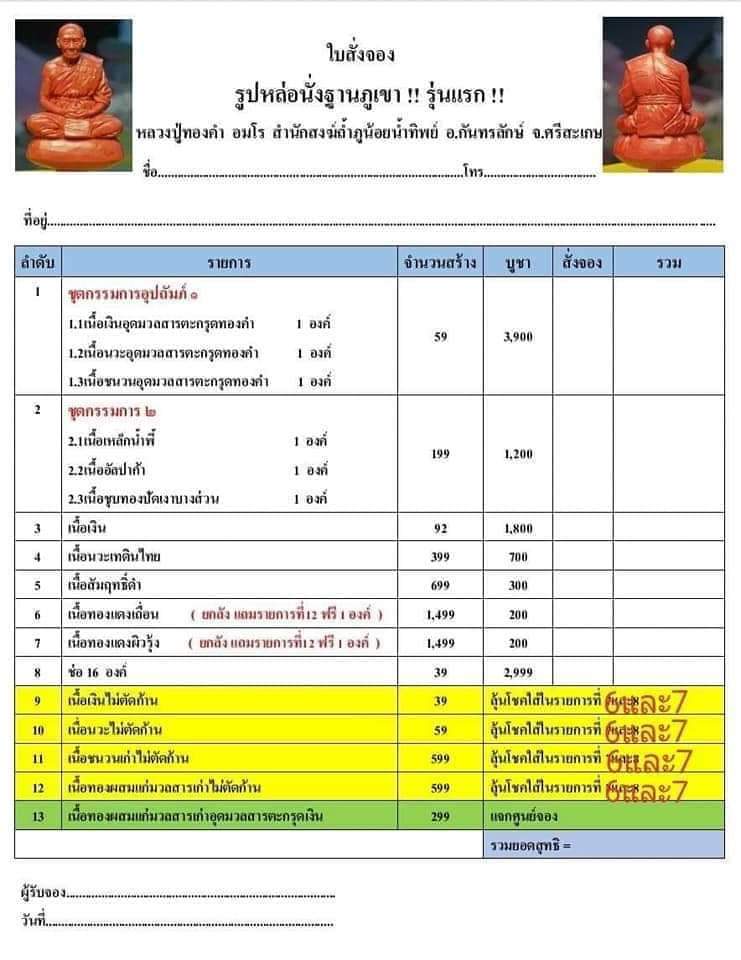 รายการ 8.ช่อ 16 องค์ ราคาจอง 2,999.-บาท มียอด = สอบถาม