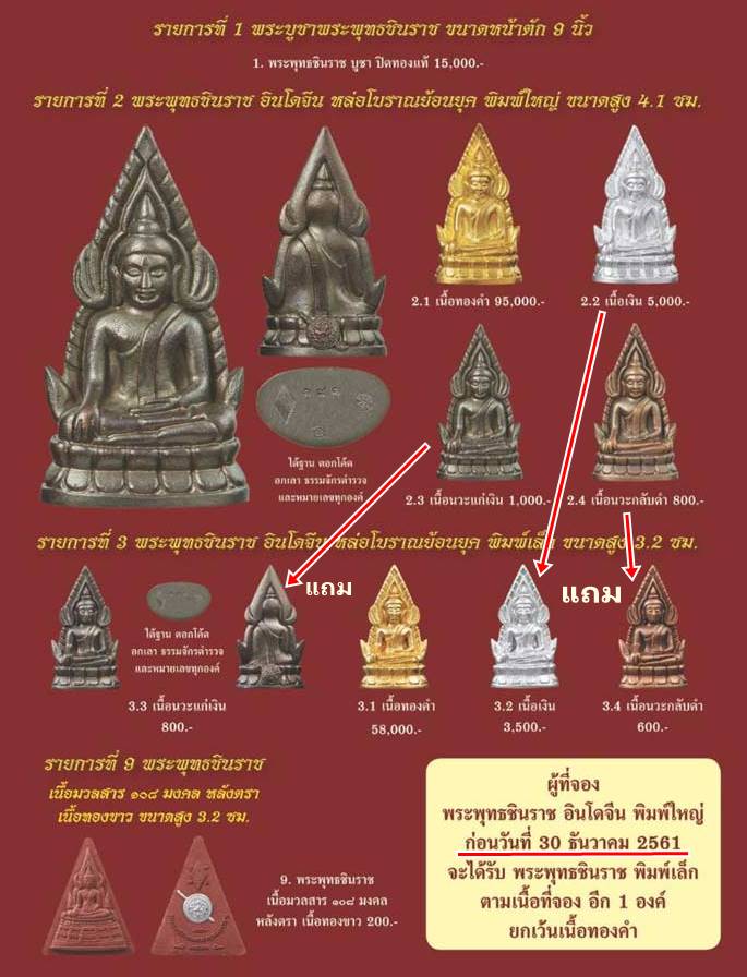 รายการสุดคุ้มค่า เฉพาะ ชินราชอินโดจีน จองพิมพ์ใหญ่ แถม พิมพ์เล็กเนื้อเดียวกัน (เว้นทองคำ) ถึง 30 ธค. นี้ เท่านั้นครับ