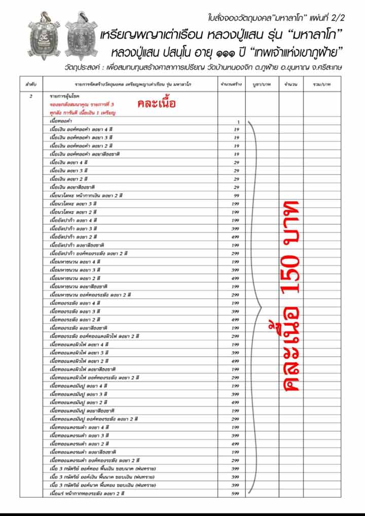 1.เหรียญลุ้นโชค มี 100 เหรียญๆละ 150 บาท