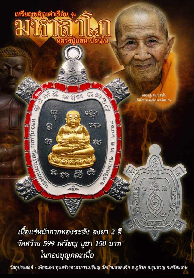 หัวข้อกระทู้ : ~พญาเต่าเรือน มหาลาโภ ลุ้นทองคำเงินหน้าทองเหรียญลงยาเพียบ หลวงปู่แสน วัดบ้านหนองจิก~