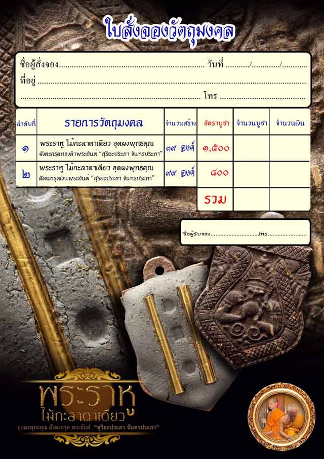 1.พระราหู ไม้กะลาตาเดียว ฝังตะกรุดทองคำ มี 1 องค์ๆละ 1,500 บาท