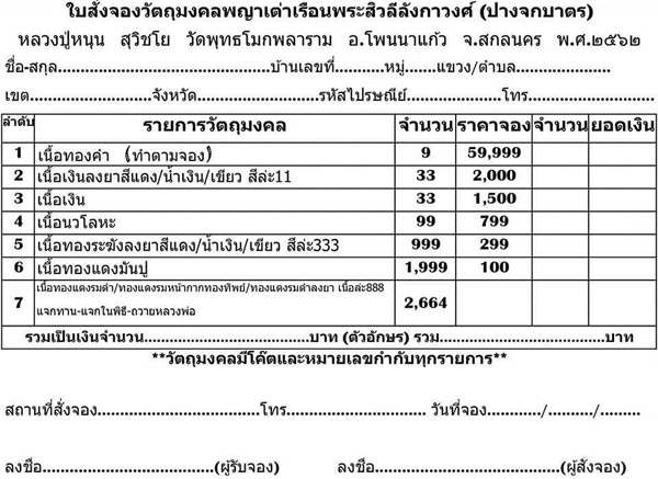 รับวัตถุมงคลประมาณสิ้นเดือนมีนาคม 2562