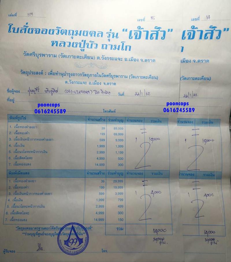 **รับใบจองตัวจริง จองจาก ศูนย์จอง การันตรี ได้รับพระจริง ไม่มียอดลม ครับ สามารถเอาใบจองไปรับพระเองที่ ศูนย์จอง A99(พันธุ์ทิพย์งามวงศ์วาน ชั้น3)