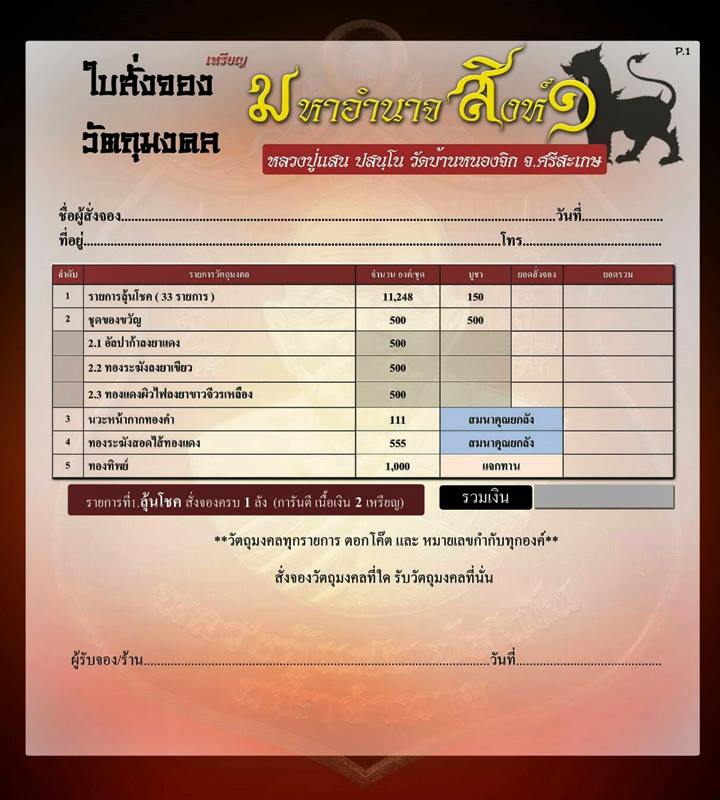รายการ 1.รายการลุ้นโชค (ลุ้น 33 รายการ) ราคาจอง 150.-บาท มียอด= 200