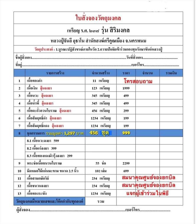 รายการ 8.ชุดกรรมการ (รับพระ 3 เหรียญ) ราคาจอง 999.-บาท มียอด= 3