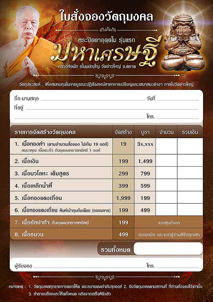 | หัวข้อกระทู้ : เปิดจอง พระปิดตาอุตฺตโม รุ่นแรก มหาเศรษฐี หลวงพ่อนัส วัดอ่าวใหญ่ จ.ตราด |