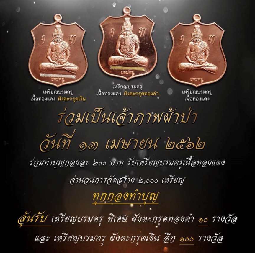 ✅ทำบุญผ้าป่ากองละ 200บาท รับเหรียญบรมครู 1เหรียญ เนื้อทองแดง