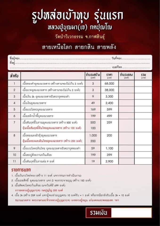 รายการ 4.เนื้อเงิน อุดผงมวลสาร ราคาจอง 2,400.-บาท มียอด = สอบถาม