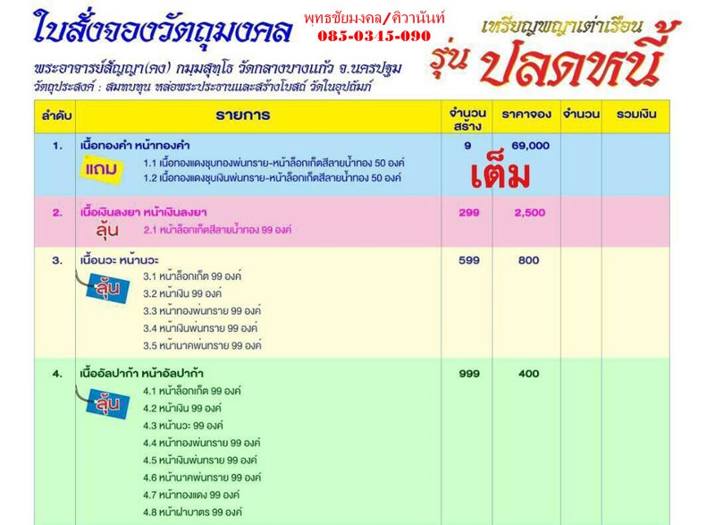 หมายเหตุ วัตถุมงคลมีโค๊ดและหมายเลขกำกับทุกชิ้น