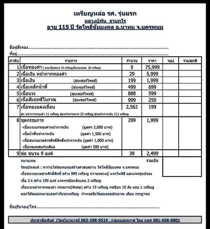 รายการ 8.ชุดกรรมการ (รับพระ 4 เหรียญ) ราคาจอง 1,999.-บาท มียอด= 2