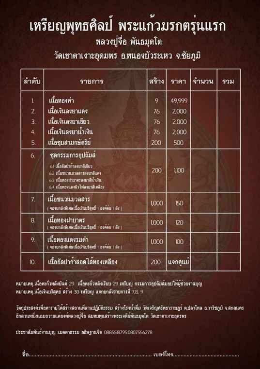 รายการ 7.เนื้อชนวนมวลสาร ราคาจอง 150.-บาท มียอด = 5