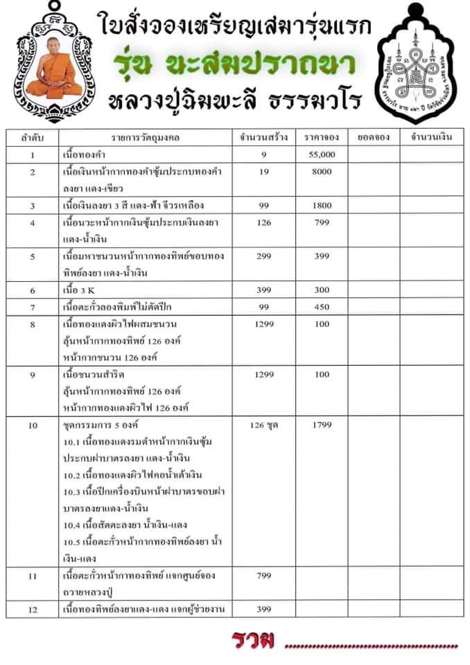 รายการ 10.ชุดกรรมการรับพระ5องค์ ราคาจอง 1799.-บาท มียอด = 6