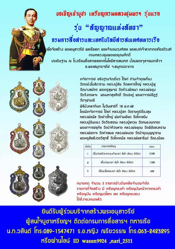 รายนามพระเกจิอาจารย์ที่เมตตาอธิษฐานจิตและประกอบพิธีมังคลาภิเษก ให้กับเหรียญที่ระลึกกรมหลวงชุมพรฯของกรมการสื่อสารฯทร. เพื่อหารายได้สมทบทุนจัดสร้างพระอนุสาวรีย์กรมหลวงชุมพรฯ ณ โรงเรียนสื่อสารและเทคโนโลยีสารสนเทศ ป้อมพระจุลฯ มีดังนี้