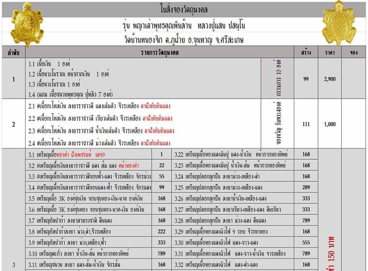 รายการที่2 ชุดของขวัญ รับพระ4เหรียญ มียอด4ชุด